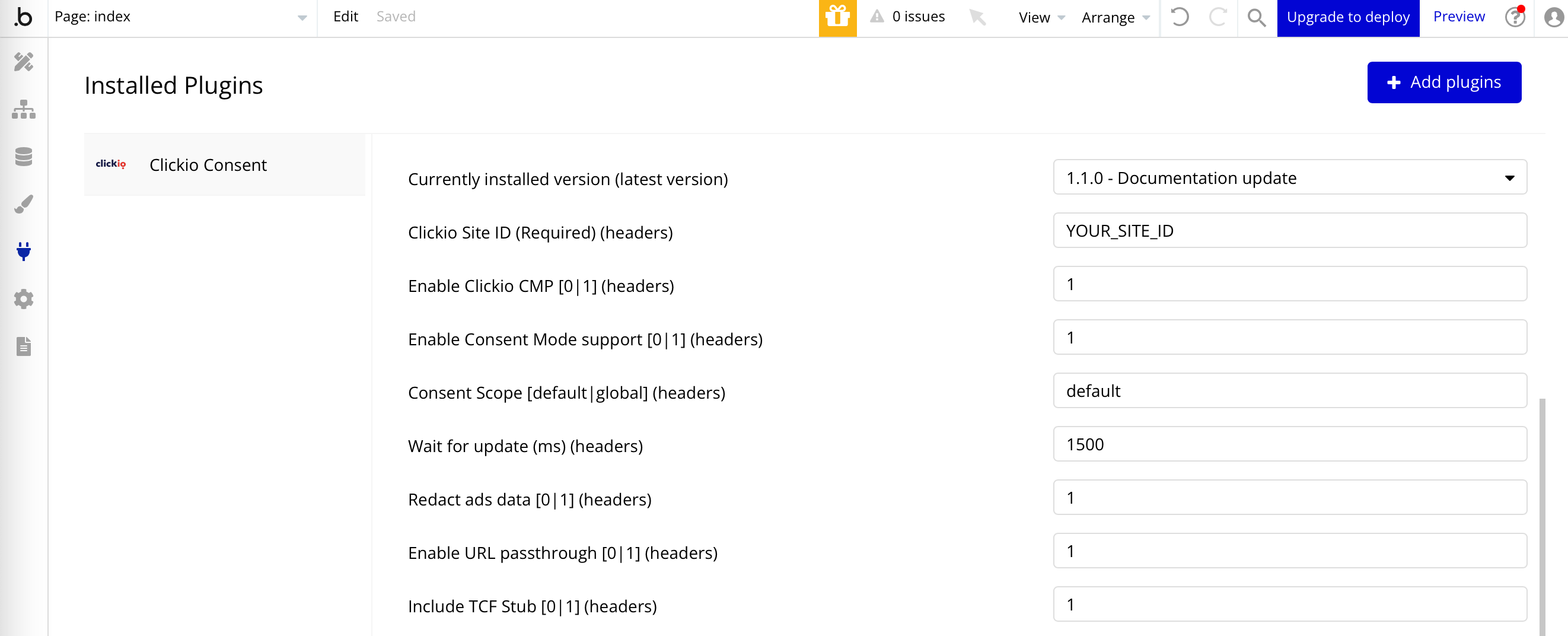 - Clickio Site ID - Place your Site ID from Clickio platform.